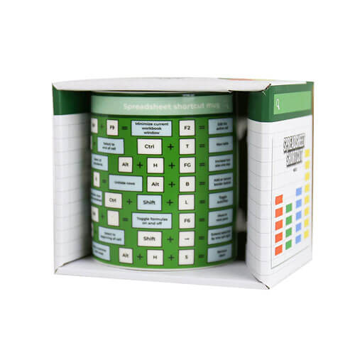 • Diese Tasse ist mit einigen der genialsten Abkürzungen verziert, die die Tabellenkalkulationswelt zu bieten hat.