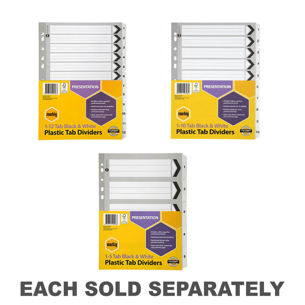 Marbig-Register und -Teiler sind ideal für den Einsatz in allen Ordnern und Aktenordnern. Erhältlich in verschiedenen Laschen und Farben. Mit Marbig wird die Organisation Ihrer Archivierung noch einfacher!