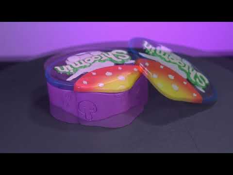 - Mit einem lächelnden roten Pilz und der witzigen Phrase „Shroomin“