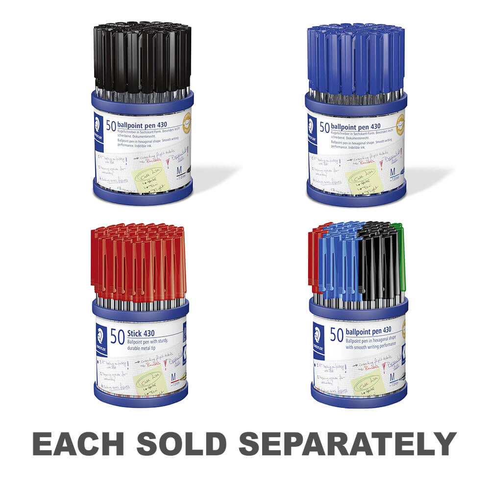 Mittel: 1 mm Kugeldurchmesser mit 1 mm Linienbreite. Regulierter Tintenfluss, um ein Verschmieren und Verkratzen zu verhindern. Kommt mit Wannenträger. 50 Stifte 430 in Schwarz.