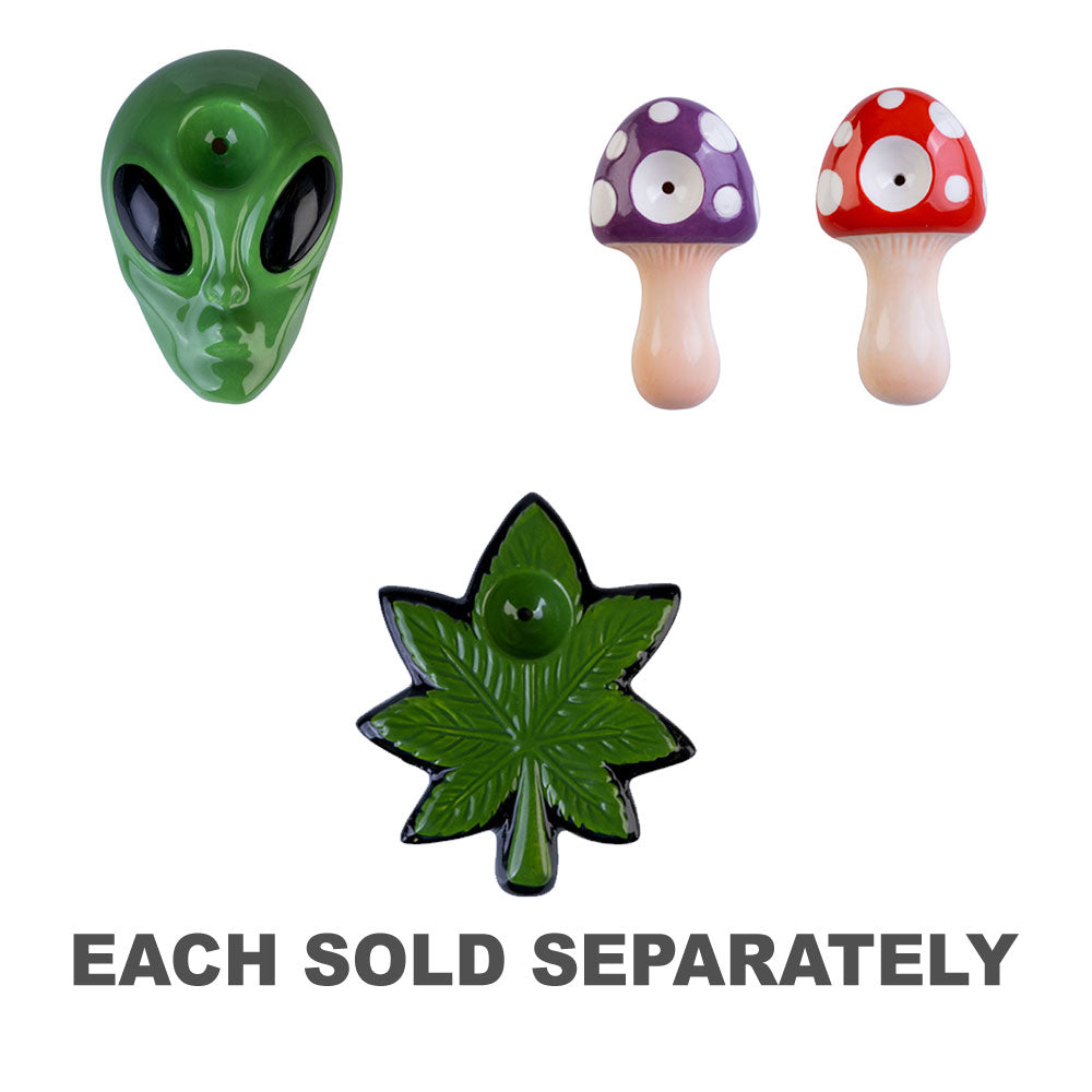 Keramikpfeife mit Doppelfunktion. Leuchtend grünes Alien-Design mit 3D-Formung. Lustige, neuartige Haushaltswaren, die Ihren persönlichen Stil zum Ausdruck bringen