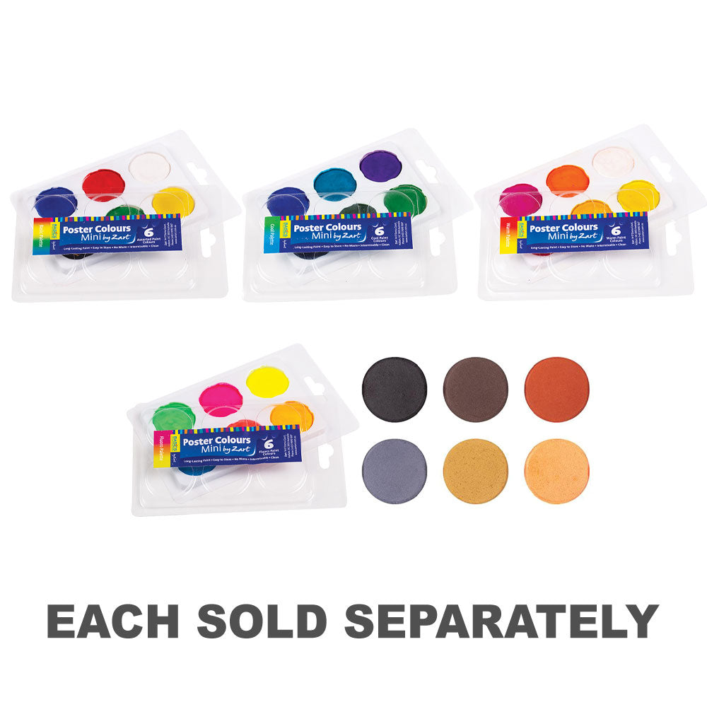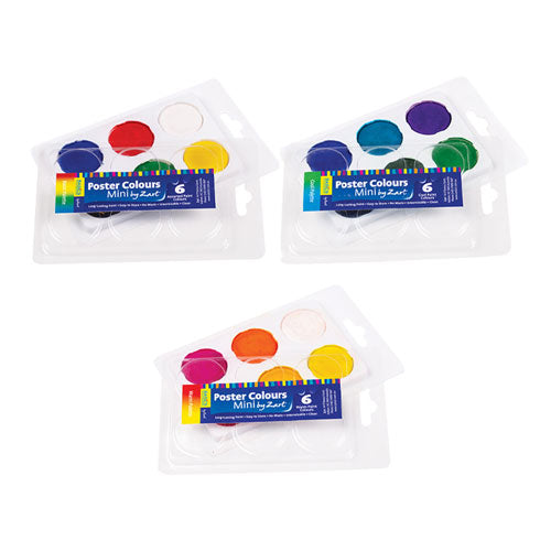 Poster Colours by Zart are long lasting, versatile and economical tempera paint colours. These water-based paint blocks come in a pan palette, providing the teacher, student and artist with convenience and portability - they are easy to set up, use and store away. Poster Colours are the ideal option for any classroom, afterschool care, student kit, craft trolley, or when a wet area is unavailable. All that's required is water and a brush and you are set to go - little wonder they've become the popular paint essential!