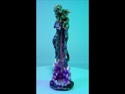 - Rockdannelsesdesign foret med lilla krystaller fremhæver din røgelse, når det smelter.