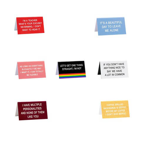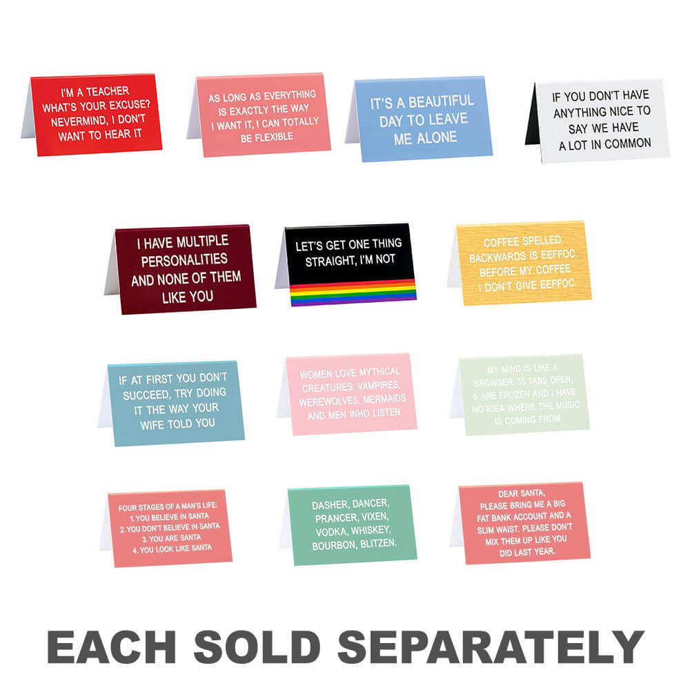 Opbryd monotonien af arbejdet og bring nogle LOL'er til kontoret med dette Bourgogne Desk -tegn fra Say What?. Billedtekst lyder: 'Jeg har flere personligheder og ingen af dem som dig'. Produkt måler 11,5 cm x 7cm.