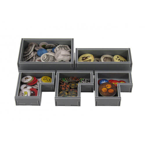 • Insert compatible with Robinson Crusoe® and the Voyage of the Beagle Vol. 1 ® expansion. The design provides both efficient storage and improved game play. The trays can be utilised during the game, and they greatly aid set-up and clear-away times. The rules and boards act as a lid on top of the trays. This product consists of a flat-pack of 4 Evacore sheets. The trays require assembly, which is quick and fun, using ordinary PVA glue. Detailed instructions are included in the package. Note: Insert designed for game with external box dimensions of 29.4 x 29.4 x 7.2 cm.