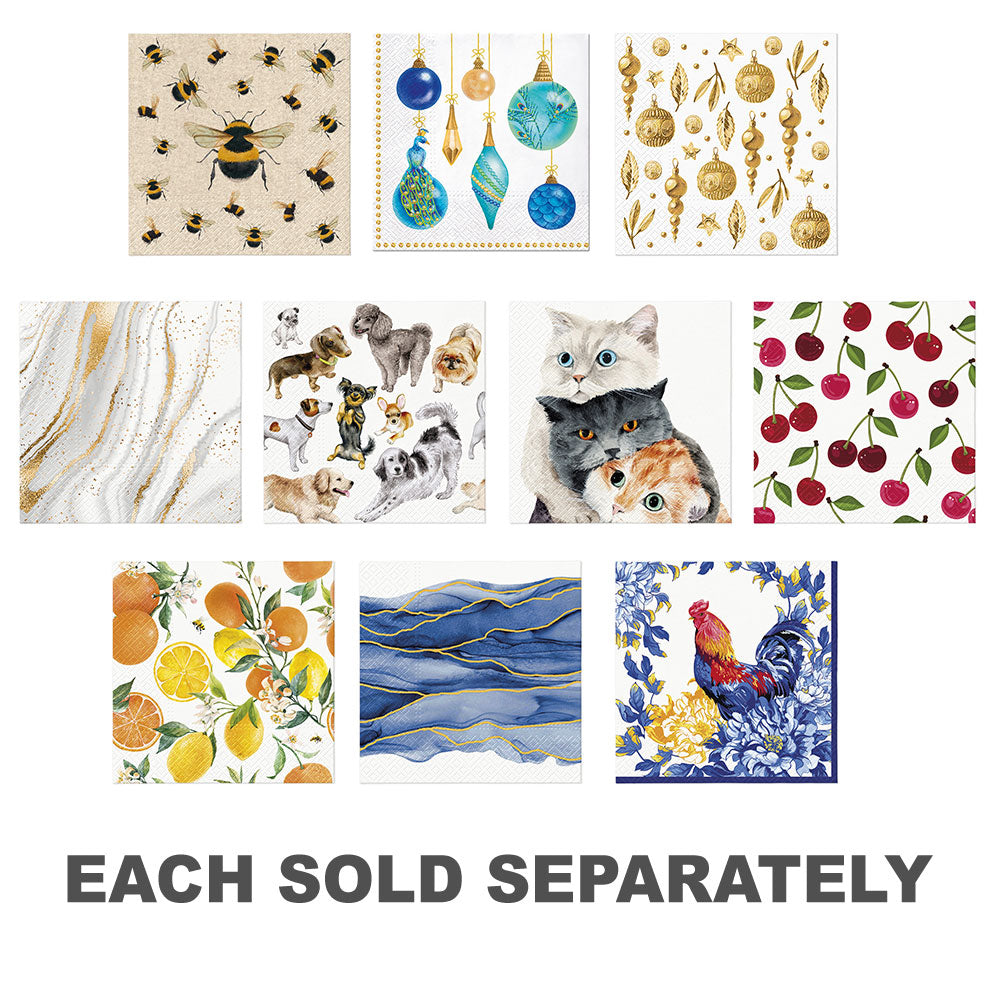 • Dimensions: 33 x 33 cm, pack of 20. The napkins are printed with environmentally friendly water based inks.