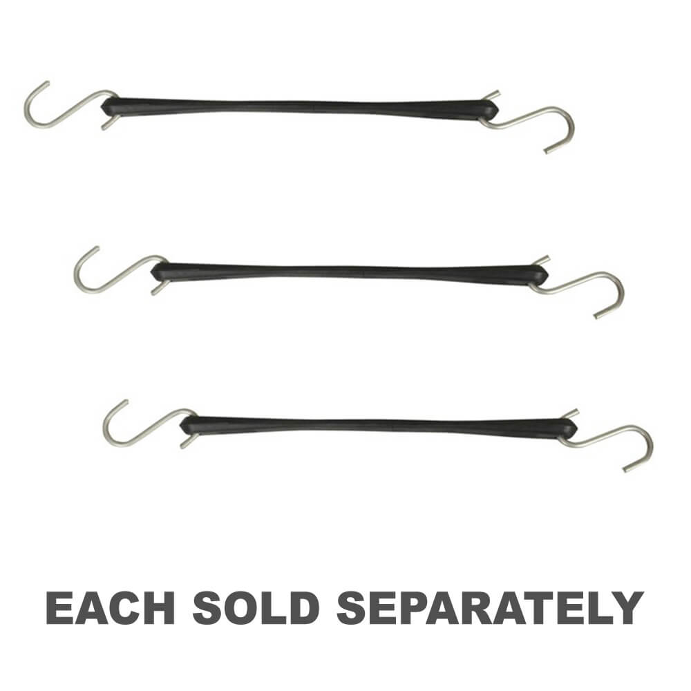Quality U.V. resistant tie-down straps, stainless steel hooks.