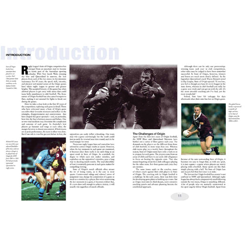 The book covers 45 rich years of State of Origin football, reflecting the triumphs, the pain, the controversies and the incidents that shape rugby league's greatest spectacle. Written by league expert Liam Hauser, State of Origin: 45 Years is a fascinating celebration of rugby league and the legendary State of Origin series, which has been one of the most widely followed sporting events since it was established in 1980. Every game of each series is explored in detail, with a blow-by-blow account of all of the key incidents that determine its complexity and outcome. These colourful field reports illuminate the ebb and flow of the games and how fine the line can be between success and failure.