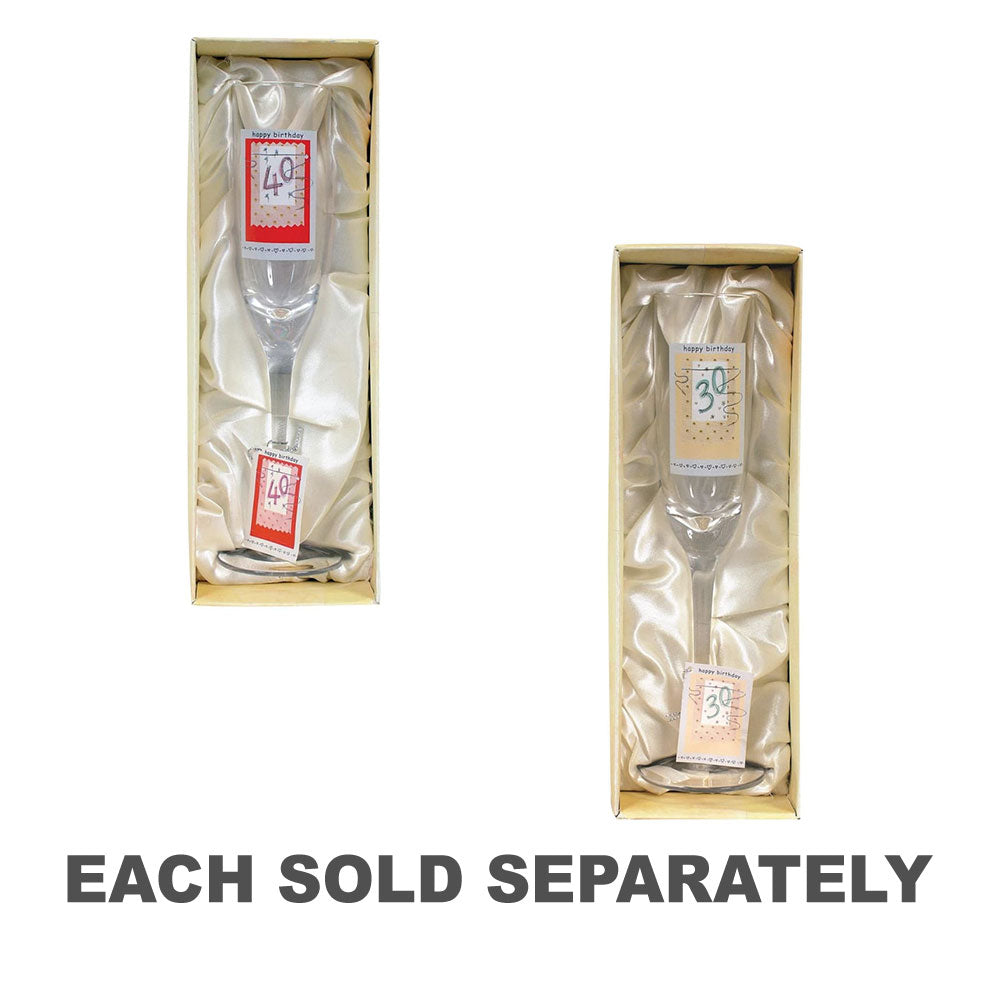 - Celebrate the big 3-0 in style with this cheerful flute that adds a touch of elegance to any birthday party.
