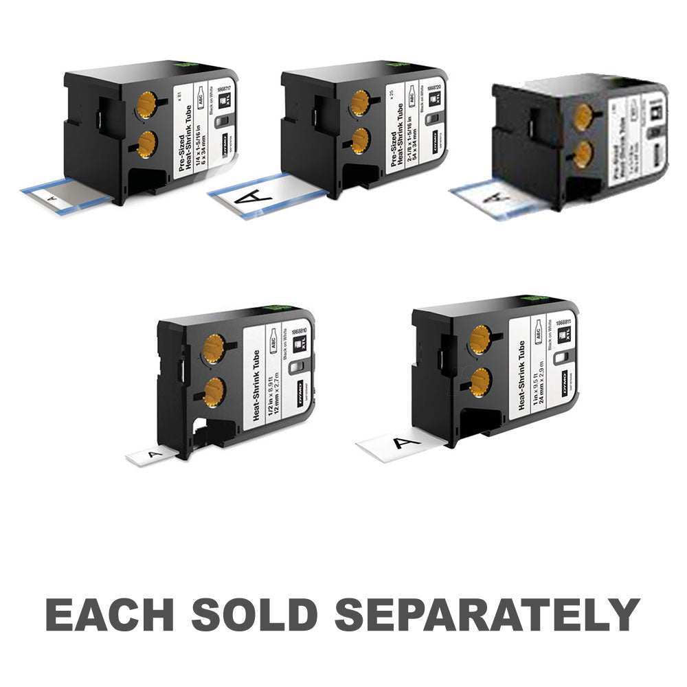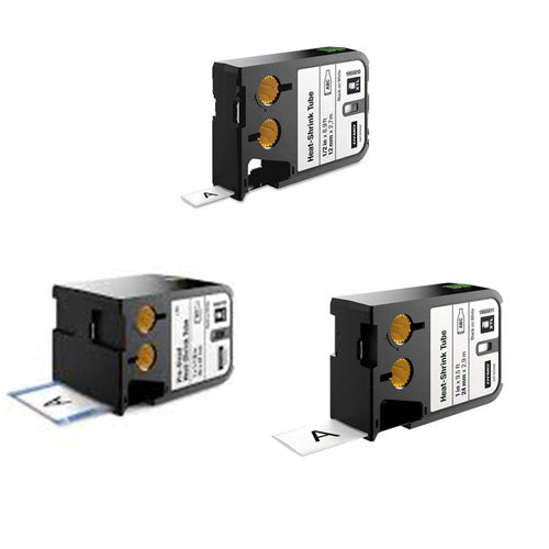 Los fabricantes de etiquetas Dymo XTL se imprimen directamente en tubos de calor continuo o de tamaño previo. Los tubos de calor de calor proporcionan aislamiento cuando se encogen y aseguran un ajuste seguro en los cables y cables con una relación de contracción 3: 1.