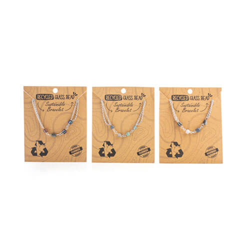 Pulsera de cadena de plata elegante y hecha a mano. Acentuado con hermosas cuentas de vidrio recicladas de color. El listado es solo para 1 elemento