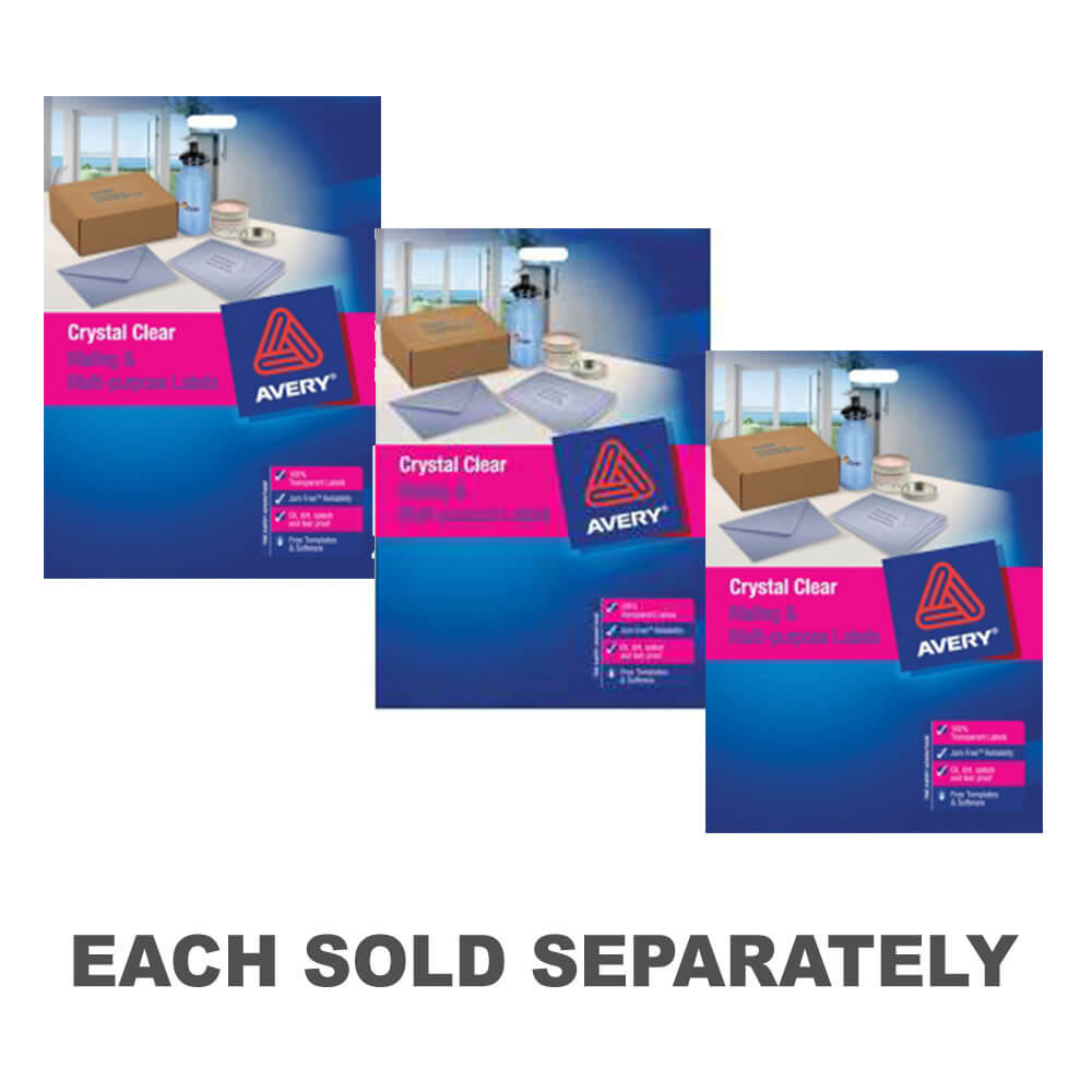 Beschriften Sie Avery Laser Clear 16 pro Blatt, Packung mit 25 Stück. Verwenden Sie transparente Versandetiketten für ein professionelles Finish.