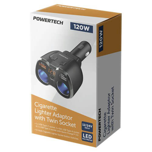 Diese Einheit wandelt die hellere Sockel in Ihrem Auto in die Dual -Zigaretten -Sockel mit 1 x USB -Steckdose und 1 x USB C 1 x USB A Qualcomm 3.0 Schnellladebuchse um. Das Onboard -LED -Display zeigt auch die Stromspannung des Zigarettenbuchsens an, an die sie angeschlossen ist. Mit den eingebauten Schaltern können Sie die Zigarettenhöhlen einzeln auf dem Adapter selbst ein- oder ausschalten.