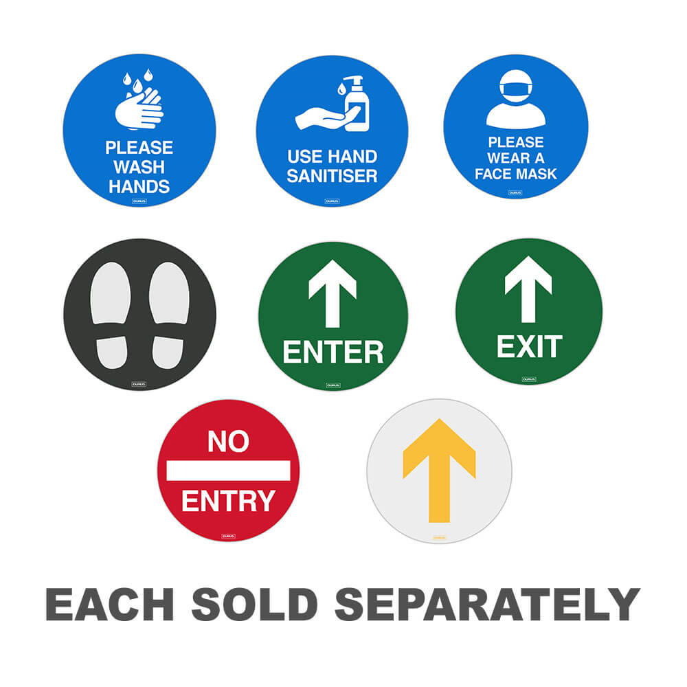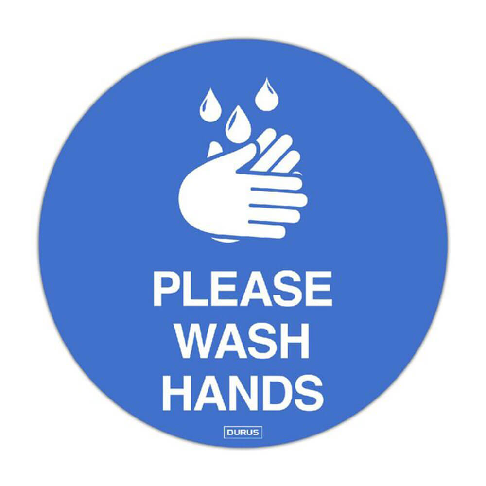 Dieser DURUS-Bodenaufkleber ist ein toller Gegenstand für Ihren Geschäftssitz. Es besteht aus rutschfestem, selbstklebendem PVC, sodass Sie Besucher auf dem Gelände anweisen können, sich die Hände zu waschen. Es kann auf den meisten Oberflächen verwendet werden, einschließlich polierter Dielen, Beton, Fliesen und kurzflorigen Teppichen.