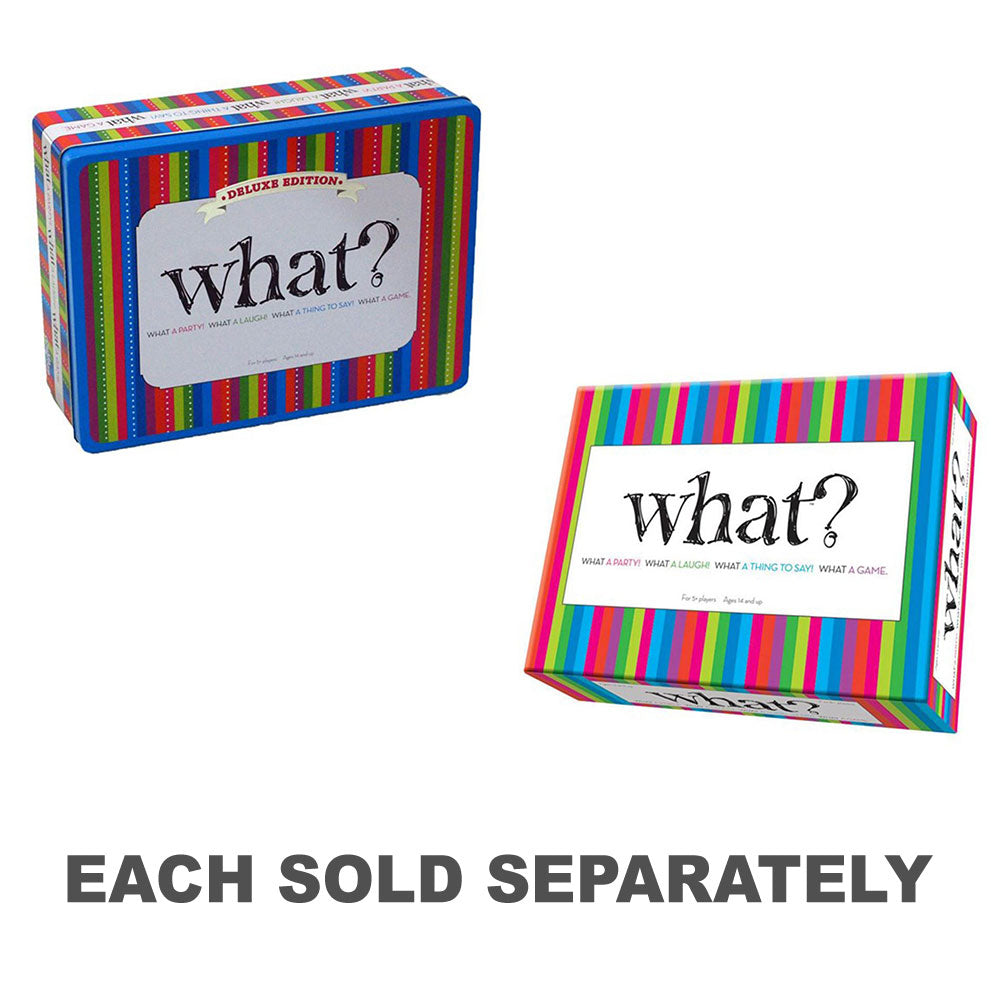 WHAT ist ein urkomisches Partyspiel, bei dem es darum geht, wer was gesagt hat. Die Spieler werden gebeten, Antworten auf humorvolle Fragen und Situationen zu schreiben, und jeder muss erraten, wer was geschrieben hat. Es besteht keine Notwendigkeit, ehrlich zu sein, es besteht keine Notwendigkeit, geschmackvoll zu sein, fühlen Sie sich frei, so albern oder lustig zu sein, wie Sie wollen, Ehrlichkeit ist in diesem Spiel nicht die beste Strategie. WAS ist das perfekte Spiel für Zusammenkünfte und Partys. Da die Spieler versuchen, den Autor nur einer Antwort zu erraten, ist das Spiel sehr schnell. Die Spieler verbringen mehr Zeit mit den lustigen Dingen, dem Schreiben und Lesen ihrer Antworten. Da die Spieler versuchen, möglichst komische und empörende Antworten zu finden, WAS? ist absolut der lustigste Ruhm, den Sie jemals spielen werden. Das perfekte Spiel für Zusammenkünfte und Partys.