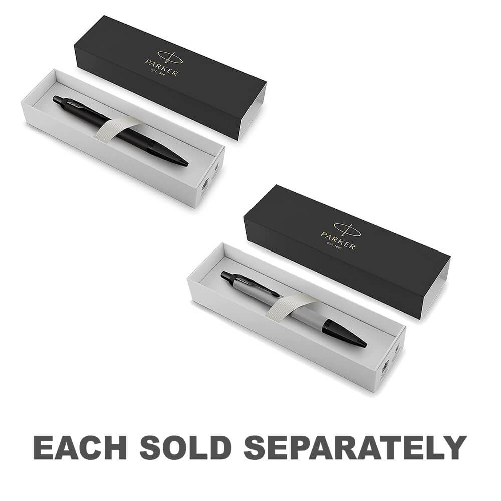PARKER IM BP MATTE BLACK/BLACK TRIM MED TIP IST SMART, POLIERT UND ETABLIERT. MIT EINER LANGLEBIGEN EDELSTAHLFEDER UND AUSFÜHRUNGEN, DIE AN DAS PARKER LEGACY WIEDERHOLEN, IST JEDES DETAIL VERFESTIGT, UM EIN SCHREIMERLEBNIS ZU BIETEN, DAS IMMER ZUVERLÄSSIG IST.