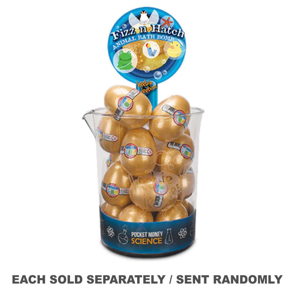 Placez cette bombe de bain d'oeufs dorées dans l'eau, regardez-la pétiller, puis trouvez un jouet d'animal surprise à l'intérieur.