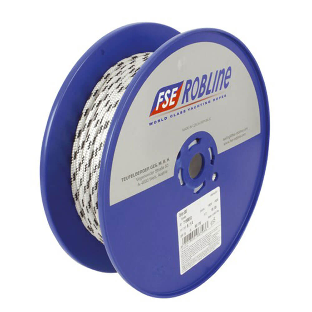 Corde dbl tressée-polyester 12 mm 100m rouleau (blanc + fleck rouge)