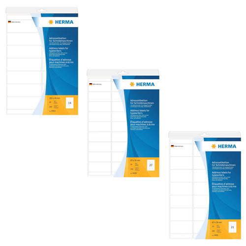 Add a touch of vintage elegance to your correspondence with Herma Permanent Adhesive Typewriter Labels! These A4-sized labels are designed specifically for typewriters, offering convenience and charm for all your labeling needs. With a permanent adhesive backing, these labels adhere securely to envelopes, packages, or files, ensuring your labels remain in place during transit. Whether for personal correspondence, decorative projects, or office use, these typewriter labels bring timeless style to your labeling endeavors. Get ready to embrace the art of typewriting with Herma Permanent Adhesive Typewriter Labels!