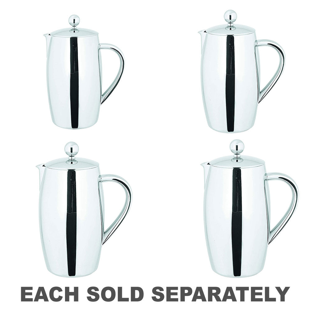 Lo stantuffo del caffè a muro a doppio muro è la nave ideale per filtrare la tua miscela di caffè preferita. È realizzato in acciaio inossidabile 18/10 di altissima qualità e manterrà il tuo caffè alla temperatura ideale grazie al suo ingegnoso design a doppio muro-ritenente di calore. Lo stantuffo in acciaio inossidabile contiene un filtro a maglia fine per un'estrazione premium del chicco di caffè. Il filtro a maglie consegna gli oli e i sapori aromatici del caffè direttamente alla tua tazza. Capacità: 1,2 litri/8 tazza.