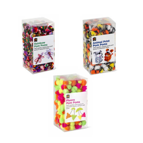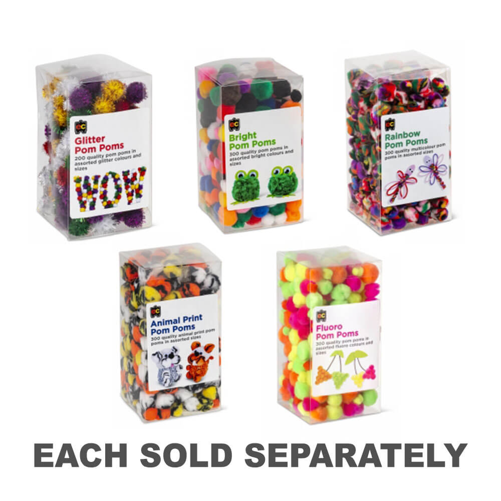 Pom pom sono divertenti per molte cose furbi, facendo calze di Natale o semplicemente giocando con loro. Questi POM POM scintillanti e soffici aggiungeranno un effetto 3D a qualsiasi attività artigianale. Colori e dimensioni glitter assortiti in una scatola di 200.