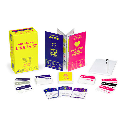 目標は、タイマーがなくなる前に、チームにできるだけ多くの秘密の単語を推測させることです。これを行うには、話したり、描画したり、ジェスチャーをしたりできます。しかし、キャッチがあります!また、各カードには、あなたの仕事を少し難しく、より滑dic的に面白くするための追加のひねりが付属しています。このゲームは、誰もが快適なゾーンから、そして愚かな気分になります。パーティー、チームビルディングイベント、ゲームの夜をゆったりとするのに最適です。