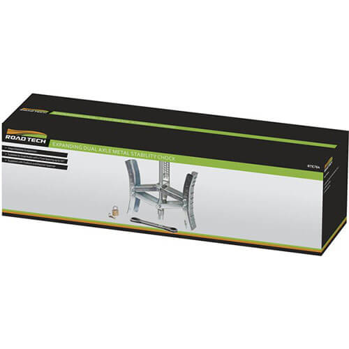 タンデム車軸キャラバン、キャンピングカー、RV、またはトレーラーのタイヤの間に収まるように設計されています。サスペンションを安定させます。これにより、駐車中の揺れ、揺れ、その他の動きが排除されます。インストールするには、統合されたハンドルを使用してタイヤの間にチョックを保持し、タイヤに適合して拡張し、締め付けボルトのナットを手で締め、付属のラチェットスパナを使用して仕上げます。パドロックも含まれています。腐食耐性亜鉛メッキを備えた重いゲージ鋼で作られています。最大10 =タイヤ間隔を持つデュアル車軸に適しています