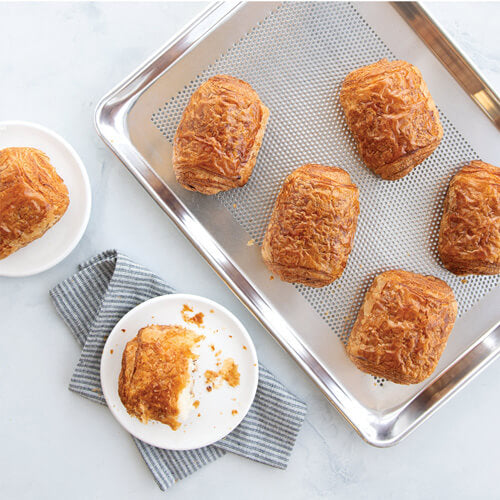 ノルディックウェアの自然の穿孔されたカリカリの半シートは、優れた熱伝導性のために純粋なアルミニウムで作られており、毎回一貫した均等に茶色の焼き菓子を生成します。さらに、この鍋の小さな穴によって作成された気流は、パン、クロワッサン、ディナーロール、ピザ、プレッツェルなど、焼き菓子に鮮明な外皮が必要なときに最適です。