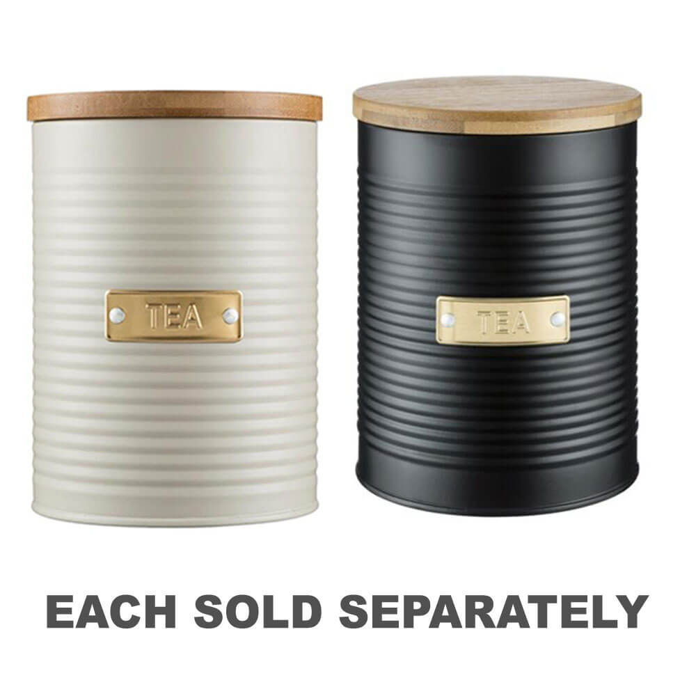 台風オットーシュガーストレージキャニスターは、あらゆるキッチンワークトップに合った洗練されたマットブラックのリブ付きデザインを特徴としています。ゴールドの「ティー」バッジは、実用的であり、あなたを整理し続けながら、優雅さと魅力のタッチを与えます。