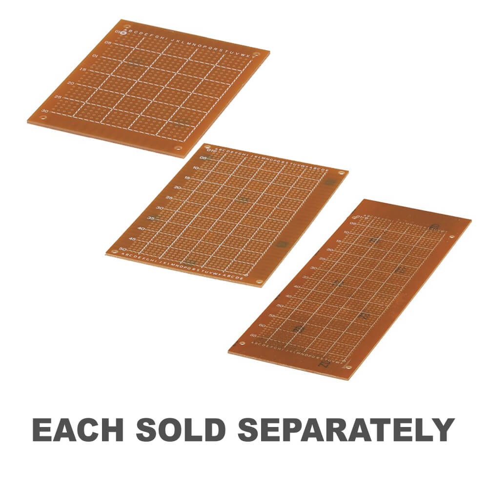 プロトタイプを構築するための低コストの方法。各ドーナツは、約0.5mmのギャップで隣人から分離されています。これにより、各パッドが効果的に分離されますが、相互接続を行うためにはんだを簡単に橋渡しすることもできます。また、各ボードには、3.6mmのエッジピッチで反対側に「指」があります。これらは、ボードまたはカードエッジコネクタとの間で接続するために使用できます。最後に、ボードの非はんだ側には、コンポーネント識別ボードのレイアウトを支援するために、アルファ数グリッドが印刷されています。