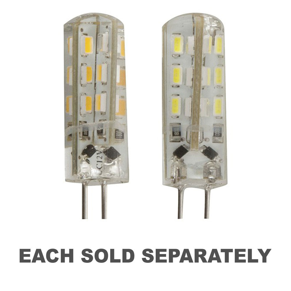 G4ハロゲンスタイルランプの低電力LED交換。国内のアプリケーションとレクリエーション車両のための軽いフィッティングでの使用に適しています。樹脂で完全にカプセル化されているため、防水性があります。