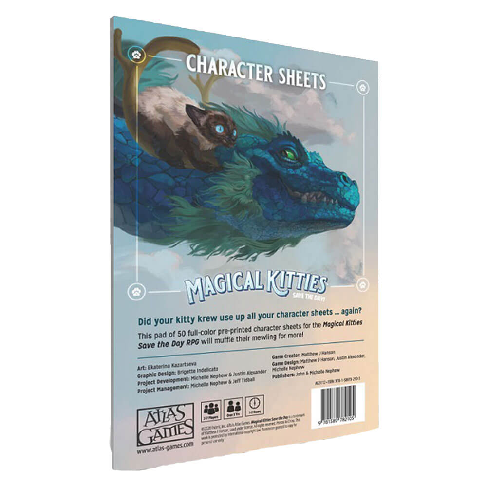 • 両面のフルカラーのキャラクターシートにより、子猫の能力を簡単に追跡できます。