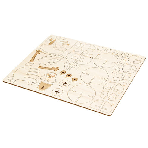 - パンチアウト:簡単に取り外し可能なピースを備えたレーザーカット、FSC認定ウッドシートが1つ含まれています。