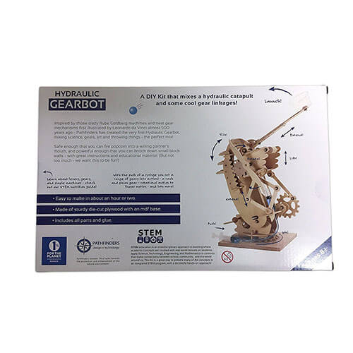 油圧ギアボットはそれほど一般的ではありませんが、これについての楽しいことは、比較的簡単に作ることができ、友達を驚かせることです。ほぼ500年前にレオナルドダヴィンチが最初に描いたクレイジールーブゴールドバーグマシンときちんとしたギアメカニズムに触発されたPathfindersは、最初の油圧ギアボットを作成しました。科学、ギア、アート、投げ物を混ぜる - 完璧なミックス!組み立てられたサイズ33 x 66cm、13 x 18インチ