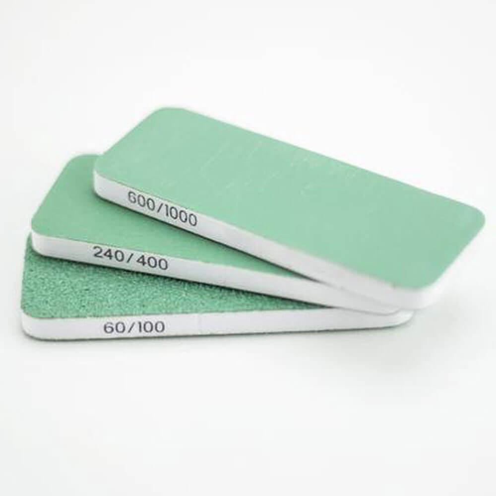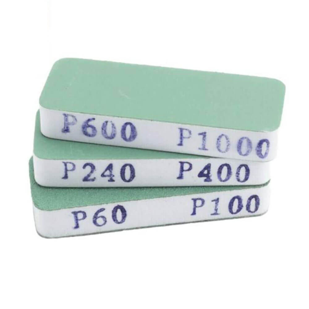 Flexi Sandersは3セットで、洗えると再利用可能です。次のグレードの組み合わせを提供します:粗い(60/100):効果的な材料除去。メディウム(240/400):ブレンドとスムージング。ファイン(600/1000):仕上げと研磨。
