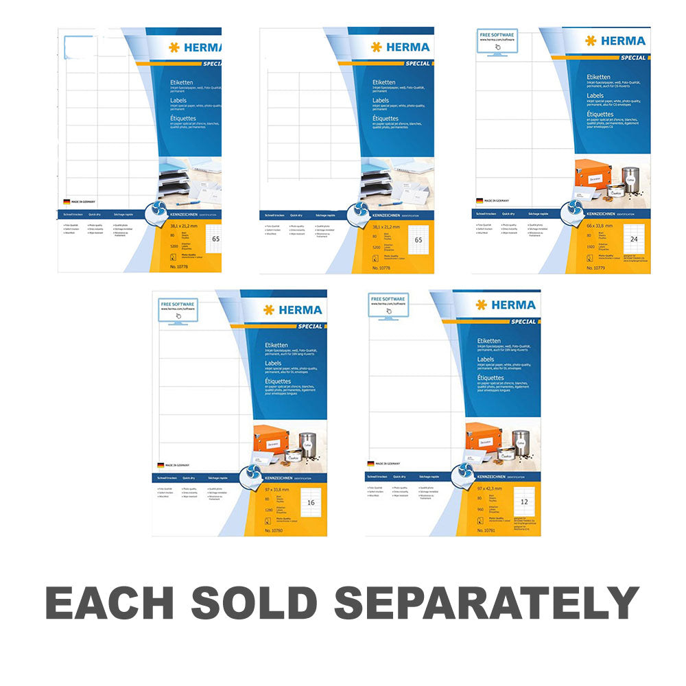 Enhance your labeling tasks with Herma Inkjet Labels! This pack includes 80 A4-sized labels, providing ample supply for various printing projects. Designed for use with inkjet printers, these labels ensure clear and vibrant printing, making them suitable for address labels, shipping labels, or product identification. Whether for business correspondence, shipping logistics, or personal organization, these inkjet labels offer versatility and convenience for all your labeling needs. Get ready to unleash your creativity with Herma Inkjet Labels!