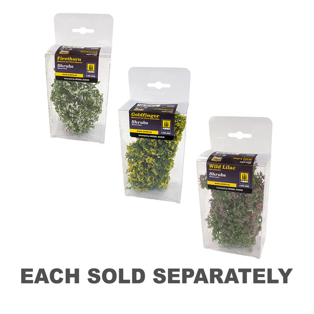 Disse buskene er designet for et bredt spekter av bruksområder, og kan trimmes og kombineres sammen, eller med andre referanser i forskjellige farger, for å gjenskape ekstremt realistiske hekker og kratt. De kan enkelt kuttes med saks for å dekke og bli tilpasset ønsket område. Lett å lime. Produktet har gule tips, ideelle for å gjenskape scener satt om våren og sommeren.