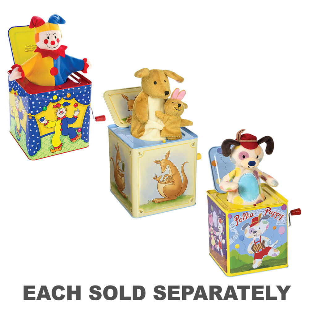 - Denne prisbelønte, klassiske Jester Jack in the Box Musical Toy vil gi glede og glede for barn i generasjoner