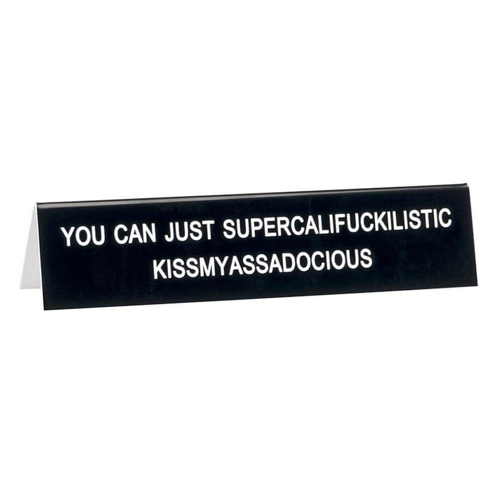 Bryt opp monotonien av arbeidet og ta med noen LOL -er til kontoret med dette svarte skrivebordet fra Say What?. Bildetekst lyder: 'Du kan bare supercalifuckilistiske kissmyassadocious'. Produkt måler 14,5 cm x 3,5 cm.