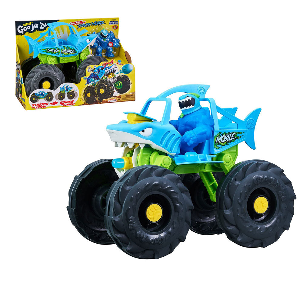 • Goo Jit Zu „Stretch and Strike” Thrash Mobile ma 3 pociski, które siedzą w drzwiach i wyrzutnia.
