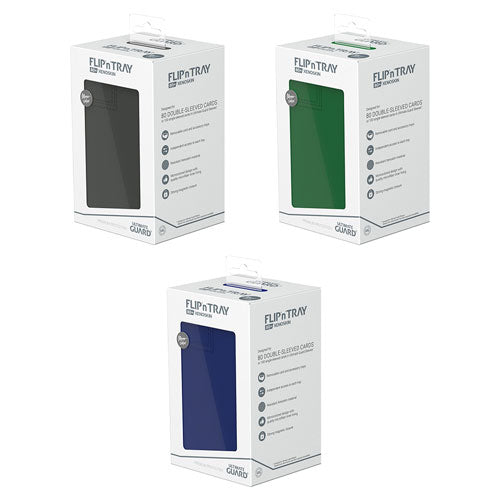 Kwintesencja ostatecznego pokładu osłonowego: ponadczasowy monokolowany konstrukcja z silnym zamknięciem magnetycznym, kartami i kościami do bezpiecznego przechowywania pokładu oraz odpornej, ale gładkiej powierzchni ksenoskinu. Z pomieszczem na 80 podwójnie rękawów lub 100 kart jednopoziomowych w standardowym rozmiarze, Flip'n'tray 80+ ma wszystko.