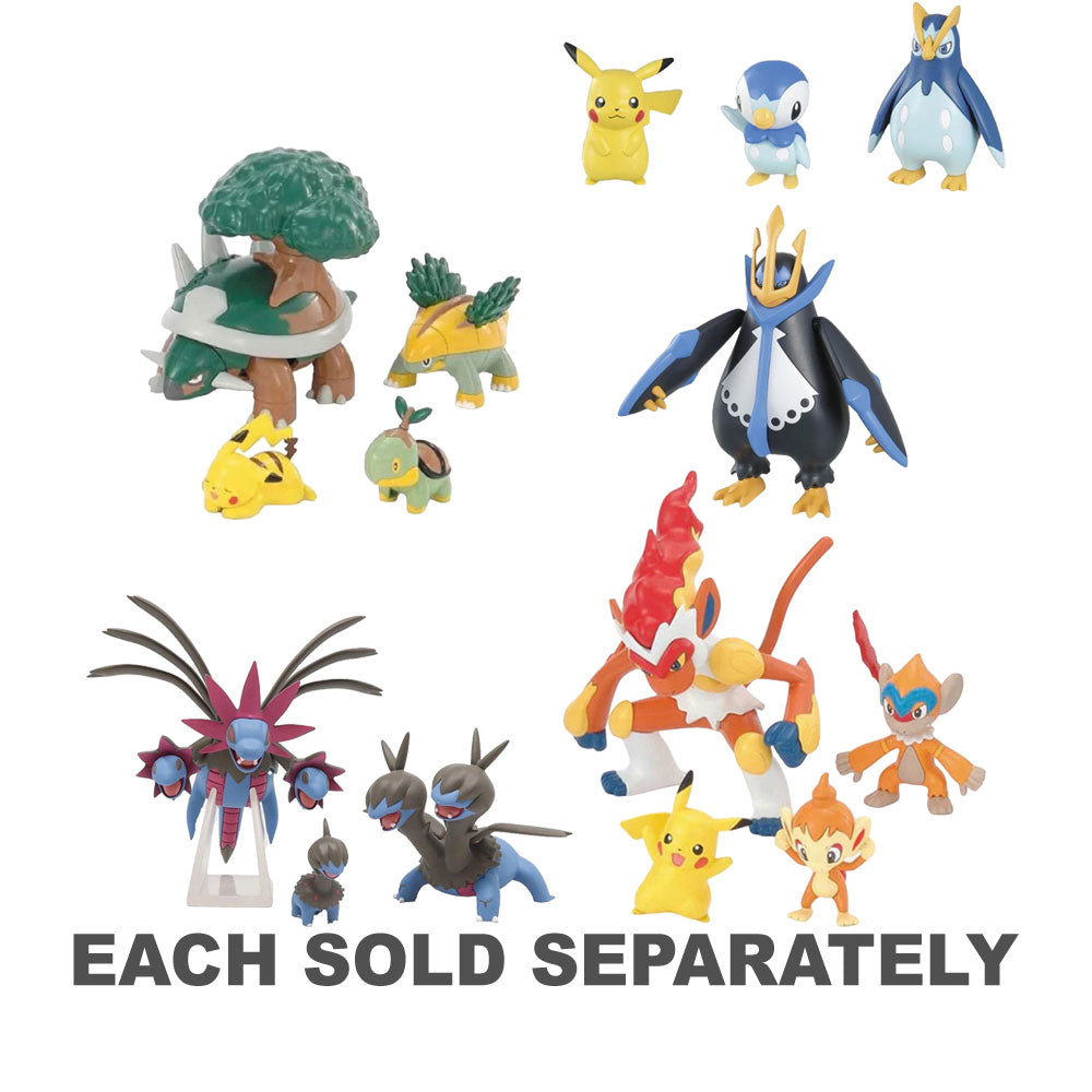 - Three-stage evolution set showcasing Piplup, Prinplup, and the majestic Empoleon.