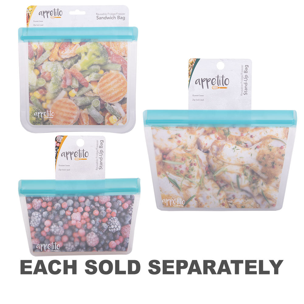 Verpacken Sie Reste, Snacks und andere Lebensmittel zum einfachen Einfrieren mit dem wiederverwendbaren/Gefrierschrank-Sandwichbeutel von Appetito.