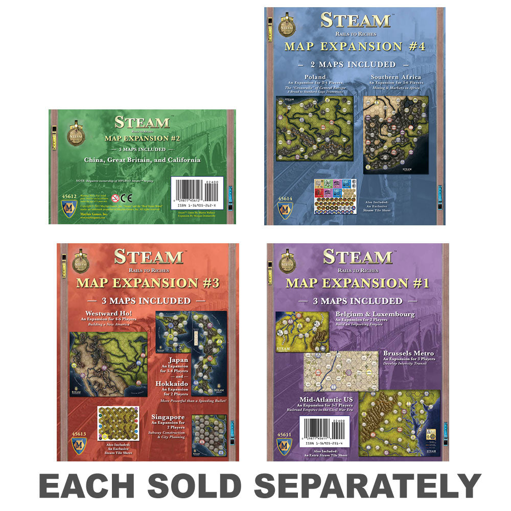 Die erste von Mayfairs Erweiterungen für Steam. Triple Play bietet drei Titel im selben Paket! Auf der einen Seite befindet sich eine Karte der mittelatlantischen Vereinigten Staaten. Auf der anderen Seite gibt es zwei Karten: Belgien und Luxemburg sowie die Brüsseler Metro. Diese Spielbretter werden Steams-Spieler mit ihren regionalspezifischen Regeln und der herausfordernden Topografie mit Sicherheit vor eine Herausforderung stellen. Komponenten