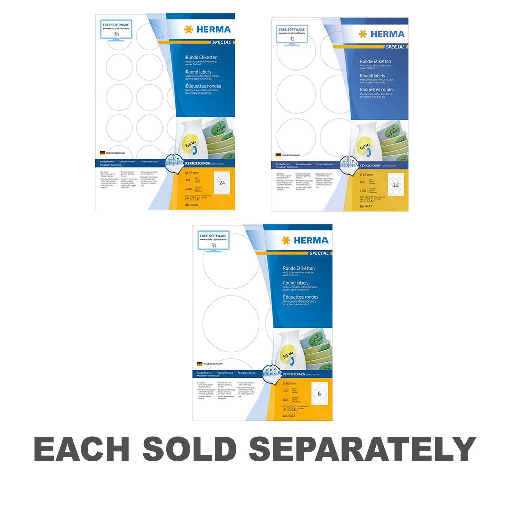 Add a touch of charm to your labeling tasks with Herma Round Removable Labels! This pack includes 100 white labels in a round shape, perfect for a variety of labeling applications. With a removable adhesive backing, these labels offer convenience and flexibility for temporary labeling needs. Whether for organizing, crafting, or personal use, these round removable labels provide versatility and charm for all your labeling needs. Get ready to make your labels stand out with Herma Round Removable Labels!