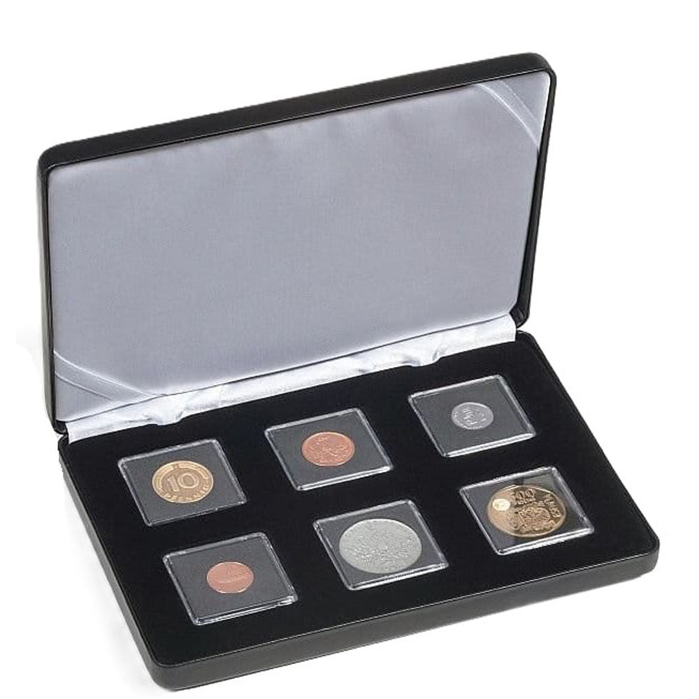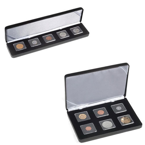 Discover a compact yet stylish solution for storing your coins with the Leuchtturm Nobile Quadrum Mini Capsule! Crafted with precision and care, this sleek black capsule offers maximum protection and visibility for your coins. Each coin is securely housed within its own compartment, ensuring easy access and preservation. Say goodbye to cluttered spaces and hello to organized elegance - with this mini capsule, you can showcase your coins with pride and confidence. Elevate your coin storage game and experience the epitome of sophistication with the Nobile Quadrum Mini Capsule!