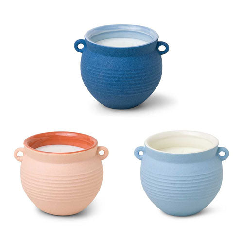 Entfliehen Sie mit diesem Santorini-Sammlungsstück auf eine Insel in der Ägäis. Dieser Artikel ist von zeitloser Textur geprägt und entführt Sie auf eine vulkanische Insel des reinen Paradieses. Diese 240-g-Kerze wird von Hand in einen kleinen Tonkrug mit Griffen und gerippten Details gegossen, der zum Stil und Duft von Santorini passt. Nachdem Sie die von Santorini inspirierten Düfte genossen haben, kann dieses einzigartige Gefäß als stilvolle Aufbewahrungsvase umfunktioniert werden.