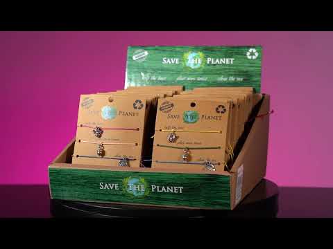 3er-Set Baumwollarmband „Save The Planet“, handgefertigt von Kunsthandwerkern. Verfügt über drei symbolische Anhänger; eine Biene, eine Eichel und ein Fisch. Dieses umweltfreundliche Armband wird nach dem Zufallsprinzip in leuchtenden Farben geliefert