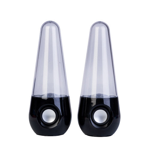 - Set of two speakers featuring mesmerising water jets and illuminating LED lights