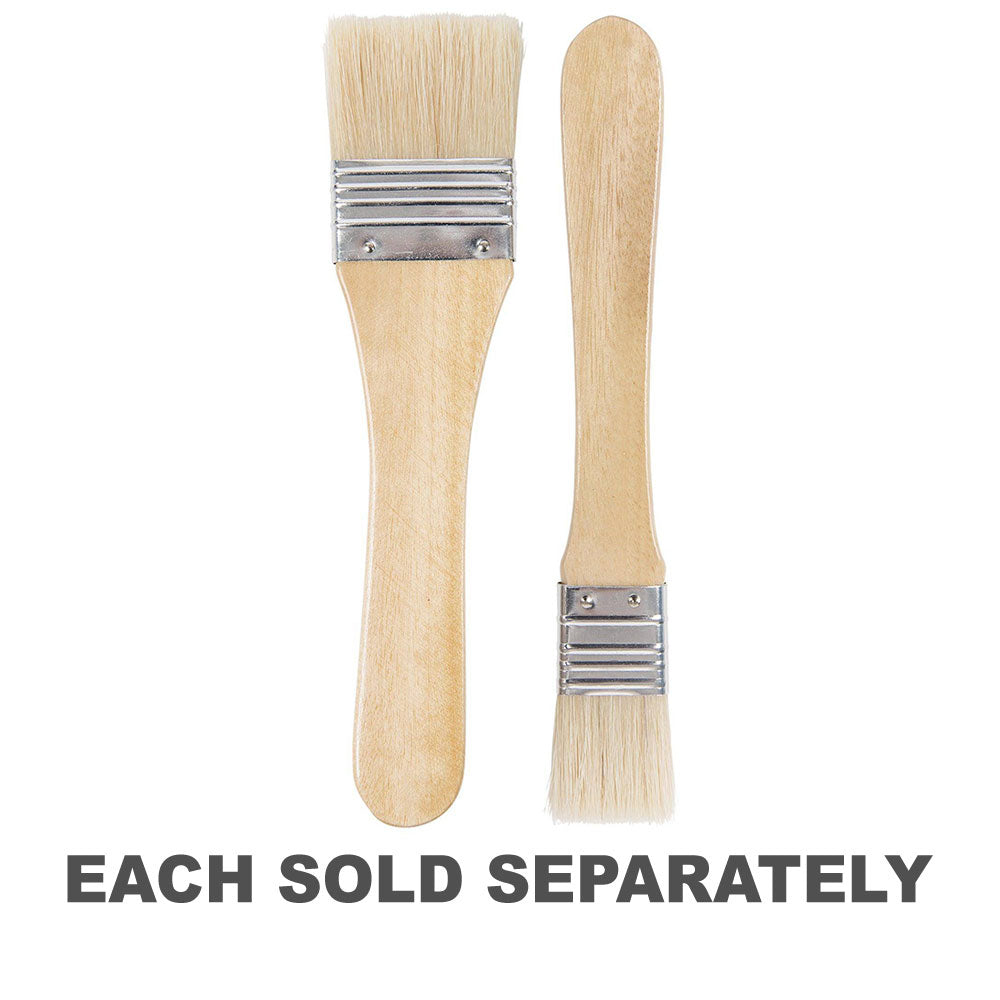 These wide brushes have a 15cm flat wooden handle, which have been varnished and tapered for easy grip and control. The crimps and studs on the flattened aluminium ferrule provide this Wide Flat Brush with additional strength and durability.